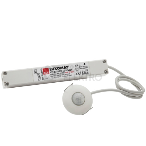 Minidetektor přítomnosti pro regulaci osvětlení v závislosti na denním světleRozhraní DALI k nastavení digitálních, stmívatelných elektronických předřadníků jako skupinyMožné přepínání dálkovým ovládáním mezi programy DALI a DSIMožné manuální zapínání a stmívání tlačítkemProvedení detektor MasterFunkce orientační Možné rozšíření detekčního rozsahu pomocí přístrojů detektor slaveJednoduchá obsluha pomocí potřebného dálkového ovládáníVýkonová část jde instalovat skrz otvor pro detektor (Ø 34 mm)Poloautomatický, plně automatický nebo režim soumrakového spínače. Včetně krycího kroužku o Ø 45 mm a krycích lamelPružinové svorky pro jednoduchou a rychlou montáž do podhledů a svítidelTovární nastavení 10 min a 500 LuxNapětí : 110 – 240 V AC 50 / 60 HzRozměry : hlava senzoru: Ø 45 x 28 mm, zdroj napájení 165 x 24 x 24 mmSpotřeba elektrické energie : ca. 1 WDetekčním rozsahem : vertikální 360°Dosah : max. Ø 10 m křížem max. Ø 6 m přímo max. Ø 4 m sedícíVelikost snímaného prostoru pro nepřímý pohyb, v případě montáže v doporučené výšce : 79 m² / 2,5 m montážní výška(in translation): 2 m / 5 m / 2,5 mStupeň krytí : IP20 / třída IIOkolní teplota : -25 °C až +50 °CBydlení : obal UV a nárazuvzdorný polykarbonátDélka kabelu : 45 cm kanál 1 (ovládání osvětlení)Výstup DALI: až do 50 DALI / DSI-EBČas dobehu : 1 min – 30 minOrientační světlo : 10 – 30 % / OFF / 5 min – 60 min / ∞Nastavená hodnota jasu : 10 – 2000 lux měření smíšeného světlaVýrobce: B.E.G. Brück Electronic GmbHBarva: bílá mat, podobný RAL9010Výr. číslo: 92920Typ: PD9-M-DALI/DSI-FC