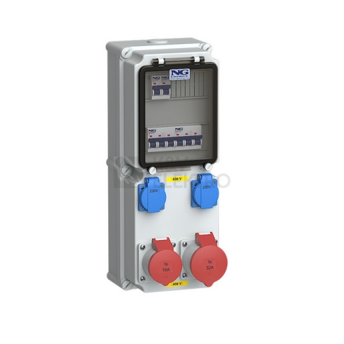 Zásuvka 1x CEE 32A 5p 400V, 1x CEE 16A 5p 400V, 2x 16A 230V, jističe