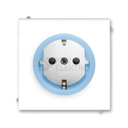 Zásuvka jednonásobná s ochrannými kontakty (podle DIN), s clonkami, bílá/ledová modrá