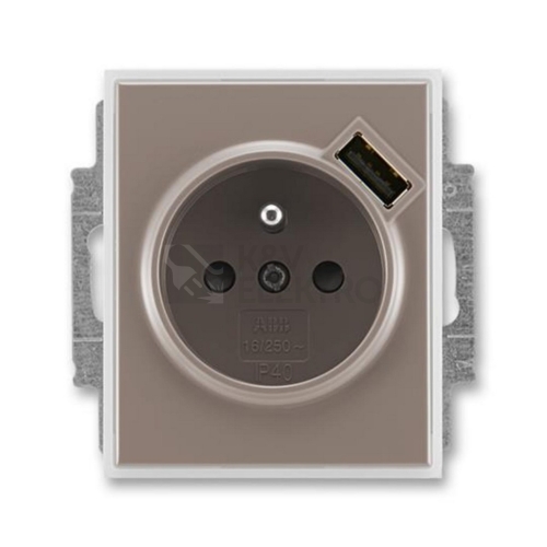Zásuvka 1násobná s kolíkem, s clonkami, s USB nabíjením, lungo/mléčná bílá