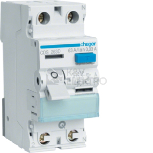 Proudový chránič 2 pól. 63 / 0,03 A, A, bezšroubové svorky