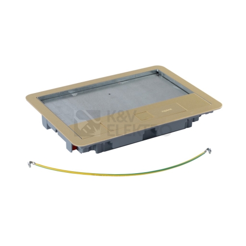 Mosazný kryt s rámečkem pro standardní podlahové krabice 8 / 12 modulů Hlavní výhody: rychlá beznástrojová montáž (snadné zaklapnutí) snadné otevření pomocí kovového tlačítka pro pohodlný přístup bezpečné kabelové výstupy vhodné do jakéhokoliv typu podlahy (zdvojené podlahy, betonové podlahy, pohledový beton, atd.) vhodné pro různé podlahové krytiny (koberec, lino, nerezová deska, plovoucí podlaha) s maximální tloušťkou 8mm vhodné do jakéhokoliv typu interiéru (kancelář, chodba, učebna, obývací pokoj, atd.) se suchou údržbou nebo vytíráním ##VIDEO:https://www.youtube.com/embed/eyjmYoQ5mK0## O výrobci: Výrobce Legrand působí na trhu elektroinstalačních materiálů řadu let. Specializuje se především na kvalitní vypínače a zásuvky Legrand. V širokém portfoliu naleznete široký sortiment designových i účelových řad. Mezi nejprodávanější patří bezesporu klasické zásuvky a vypínače Legrand Valena. V současné době je nahrazuje inovativní řada Legrand Valena Life. Oblíbené jsou i praktické přístroje Legrand Niloe, jež se uplatní doma stejně jako v kanceláři. Pokud chcete něco skutečně výjimečného, pak je tu série Legrand Celiane. Zamilujete si její vkusnou kombinaci oblých a ostrých tvarů, jež do vaší domácnosti přinesou styl. Pokud toužíte po skutečném luxusu, okouzlí vás italský design zásuvek a vypínačů Bticino Axolute, či Bticino Living.Light, jež v sobě snoubí atraktivní tvar a ty nejkvalitnější materiály. V nabídce máme i další produkty oblíbené francouzské značky Legrand. Nepřehlédněte v našem sortimentu praktické zásuvky, nebo designové vypínače Legrand, ale i videotelefony nebo termostaty Legrand.