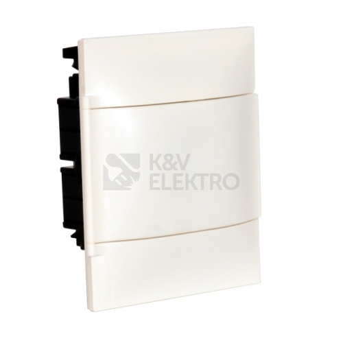 Practibox S - rozvodnice pro zapuštěnou montáž do zdiva Vlastnosti výrobku: Bílé dveře Počet řádků: 1 Počet modulů na řádek: 8 Celkový počet modulů: 8 Výška: 225 mm Šířka: 256 mm Hloubka: 100 mm IP 40 - IK07 Otevírání dveří: 180° Dodávané s dveřmi, PE a N svorkovnicí