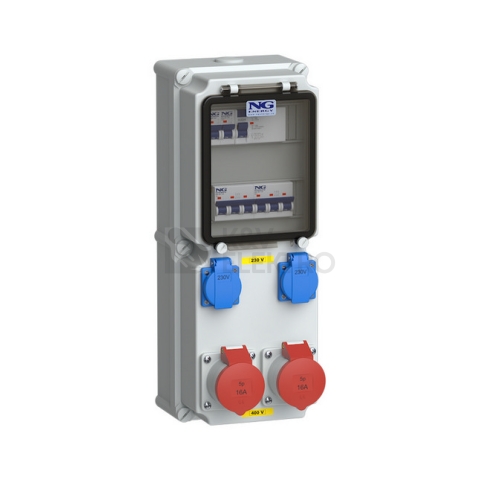 Zásuvka 2x CEE 16A 5p 400V, 2x 16A 230V, chránič 4p, jističe