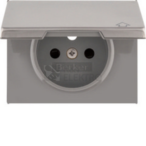 Centrální díl pro zásuvku se zemnícím kolíkem s ochrannou proti dotyku s víčkem, Berker K.5, ušlecht. nerez. ocel