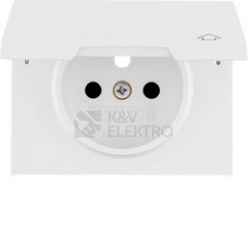 Centrální díl pro zásuvku se zemnícím kolíkem s ochrannou proti dotyku s víčkem, Berker K.1, bílá, lesk