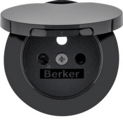 Centrální díl pro zásuvku se zemnícím kolíkem s ochrannou proti dotyku s víčkem, Berker R.1/R.3, černá, lesk