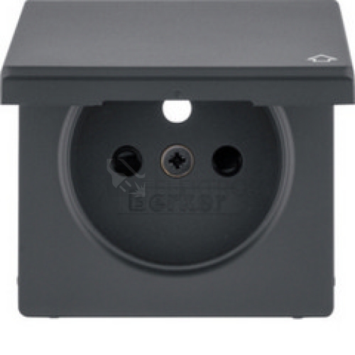 Centrální díl pro zásuvku se zemnícím kolíkem s víčkem, Berker Q.x, antracit sametová