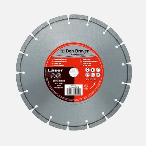 Laserem svařené segmenty Použití: vysoká kvalita řezání běžných stavebních materiálů s výjimkou sanitární keramiky Maximální obvodová rychlost: do Ø 230 mm = 80 m/s Více informací na www.denbraven.cz. obj. číslo typ počet kusů v balení EAN AB310 PROFI LASER 115mm 1 8595100146571 AB311 PROFI LASER 125mm 1 8595100146588 AB312 PROFI LASER 150mm 1 8595100146595 AB313 PROFI LASER 230mm 1 8595100146601