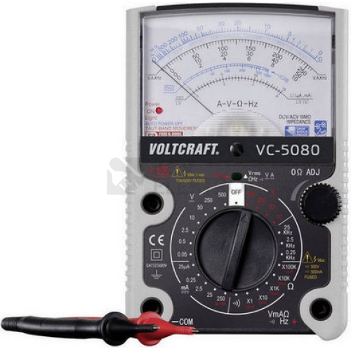 Analogový multimetr s mnoha měřicími rozsahy a zrcadlovou stupnicí. Díky extrémně odolnému měřiči ve spojení se vstupy chráněnými proti přetížení je multimetr VC-5080 téměř nezničitelný. Při měření napětí je vstupní impedance jen 10MΩ, takže tím bude měřené napětí jen velmi málo ovlivněno a tak může být dosaženo přesných hodnot měření. Technické parametry Min. měřená hodnota V/DC 0.001 V Max. měřená hodnota V/DC 500 V Min. měřená hodnota V/AC 0.2 V Max. měřená hodnota V/AC 500 V Min. měřená hodnota A/DC 0.5 µA Max. měřená hodnota A/DC 10 A Rozsah měření odporu 0 - 200 Ω MΩ Rozsah měření frekvence 0,01 KHz - 25 Hz KHz Vnitřní odpor DC 10 MΩ Vnitřní odpor AC 10 MΩ Základní přesnost (±) 3 % Typ měření True RMS Frekvenční rozsah 40 - 400 Hz Hz Rozhraní Žádné Napájení Baterie 9 V, 2x baterie AA Vnější výška 160 mm Vnější šířka 105 mm Hmotnost 460 g Kalibrováno dle Bez certifikátu Kategorie měření CAT III 500 V Měření napětí AC/DC Měření proudu DC Typ (výrobce) VC-5080 Displej (digitální / mechanický) Analogový Kategorie produktu Multimetr Vybavení CAT III 500 V 10 MΩ vstupní impedance pro všechny měřící oblasti napětí Extrémně odolná měřící jednotka Vlastnosti Rozsahy měření V/AC, V/DC, A/DC, Ω, test tranzistorů, frekvence, test diod, akustický zkoušeč propojení Funkce automatického vypnutí Rozsah dodávky Baterie 2 bezpečnostní měřicí kabely ##VIDEO:https://www.youtube.com/embed/8O9y253NZPk##