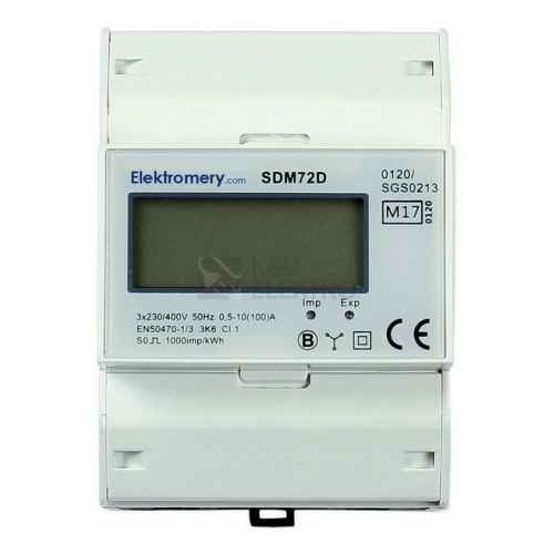 Třífázový, jednosazbový elektroměr na lištu DIN levný elektroměr pro fakturační měření dostupný s dvěma typy úředního ověření MID (ověřeno dle metodiky MID) přímé měření do 100 A LCD displej 6+1 podsvícený displej (bílý) třída přesnosti 1 montáž na lištu DIN velikost přesně 4 moduly (72 mm) impulsní výstup SO+LED 1000 imp./kWh vlastní příkon 2W 3x230/400V počet tarifů: 1