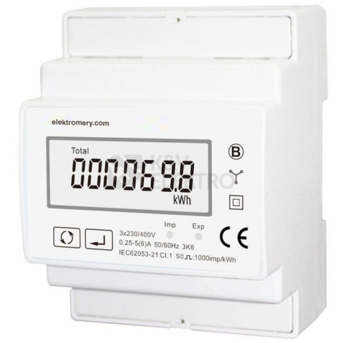 Třífázový jednosazbový elektroměr na lištu DIN, neověřený, LCD, x/5ANastavitelný převod připojených měřících transformátorů: lze nastavit libovolný převod