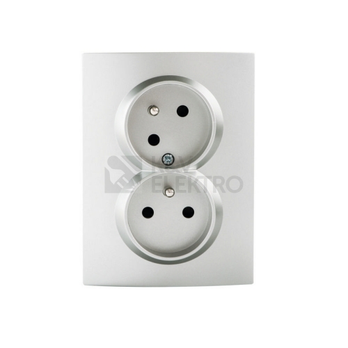 Zásuvka dvojitá s uzemněním, pootočená, kompletní - stříbrná