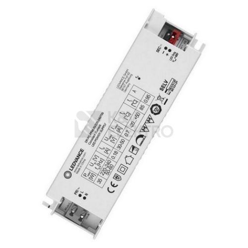 LED předřadník pro stálý proud s fázovým rozhraním stmívání. Vlastnosti produktu: K dispozici ve variantách 13 W, 18 W, 25 W a 35 W. Nezávislá instalace pomocí volitelné sady kabelové svorky. Stmívatelné na náběžné hraně a odtokové hraně. Stmívatelné od 10 až po 100 %. Životnost: až 50 000 h (při maximální teplotě tc). Typ ochrany: IP20. Přiřazený, konstantní výstupní proud. Nízká úroveň rušivého proudu < 5%. Napájecí napětí: 220…240 V. Provozní frekvence: 50/60 Hz. Provozováno při méně než 60 V: Bezpečné malé napětí (SELV). Ochrana proti reverznímu přehřívání, přetížení, zkratu a chodu naprázdno. Výhody produktu: Umožňuje instalaci s běžně používanými stmívači s regulací na vzestupné i sestupné hraně (leading-edge / trailing-edge). Pětiletá záruka. Tenké těleso svítidla pro instalaci do úzkých prostor. Vysoká účinnost a spolehlivost. Druh použití: Vhodné pro LED svítidla a LED moduly. Použitelné pro svítidla třídy ochrany I a II. Pro vnitřní SELV instalace. Kanceláře, obchodní střediska, nemocnice, restaurace, hotely. Výbava / příslušenství: Sada kabelových svorek k zajištění správného odlehčení tahu.