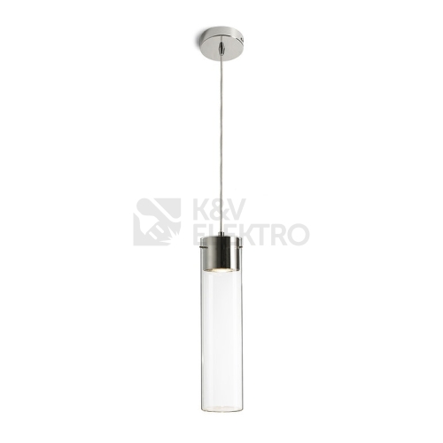 Závěsné svítidlo s chromovou základnou a stínidlem z čirého skla. Skleněné stínidlo je ve spodní části uzavřené a je možné do něj vkládat vhodné dekorace.