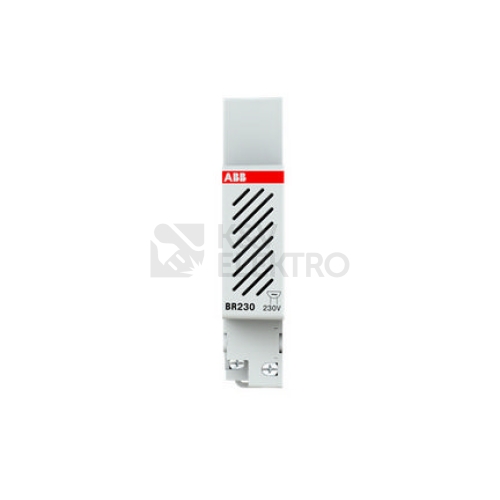 BR230, Elektromechanický modulární bzučák 230V AC (50/60Hz), přerušovaný režim chodu, nevhodný pro trvalý provoz (max. 15s následně klid po dobu 60s), slouží k akustické signalizaci v domovní instalaci