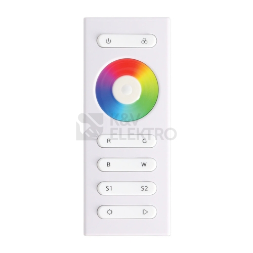 RF dálkový ovladač pro řízení jasu a barevných režimů RGBW LED pásků umožňuje řízení 1 zóny RF RGBW přijímačů (nejsou součástí), v této zóně může být neomezeně přijímačů. 10 předprogromavaných barevných režimů, možnost ovládat každou barvu samostatně. Rozměry ovladače: 120×48×17,6mm, napájení 3xAAA baterie (nejsou součástí), dosah cca 20m.
