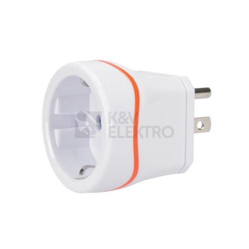 cestovní adaptér s uzemněním pro obyvatele Evropy, navštěvující USA a země s US standardem. Schuko uzemnění zásuvky, použitelné pro univerzální vidlice vhodné i pro spotřebiče s neuzemněnou 2-kolíkovou šňůrou bezpečná konstrukce 100V - 250V / 15A max. 3450W / 230V, max. 1650W / 110V dětské pojistky barva: bílá