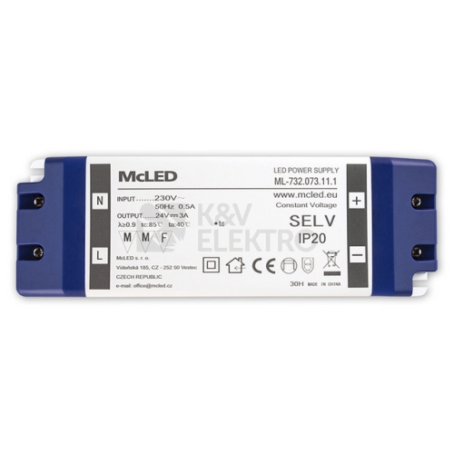 Pořiďte si napájecí zdroj pro LED pásky, který můžete bez obav instalovat i do nábytku. Kvůli krytí IP20 by se ale mělo vyhnout místům, kde může navlhnout. Toto plastové trafo na LED pásky 42 V DC má výstupní výkon 72 W. Jestli je pro vaši instalaci vhodné poznáte podle jednoduchého vzorečku, kdy výkon LED pásku x délka LED pásku + minimálně 20 % nesmí tento výkon přesáhnout. Trafo pro LED pásky 24 V DC s výkonem 72 W a proudem 3000 mA je vyrobené z plastu a má rozměry 170 mm x 57 mm x 32 mm. Napájecí zdroj s označením SELV (bezpečné napětí) má stupeň krytí IP20 a disponuje vstupní a výstupní svorkovnicí. Trafo má certifikáty CE, RoHS, MM a F. Podívejte se na všechny napájecí zdroje pro LED pásky. Toto trafo slouží pro LED pásky 24 V, nabízíme i jiné LED pásky. K jejich instalaci se vám může hodit také hliníkový profil, difuzor, koncovky, příchytky nebo konektory. O výběru a instalaci LED pásku si můžete přečíst také na našem blogu. O společnosti McLED Společnost McLED s.r.o. je mladá česká firma, která se specializuje na kvalitní a úsporné LED osvětlení, se sídlem ve Vestci u Prahy. Kromě LED pásků McLED nabízí McLED také širokou škálu LED žárovek, svítidel na stěnu, vestavného osvětlení McLED či zářičů.