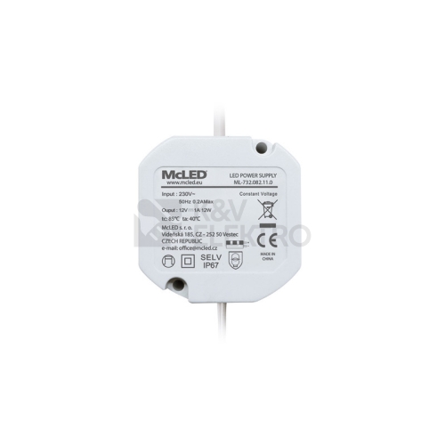LED napěťový zdroj pro LED pásky 12W, výstup DC 12V/1A. IP67. Vhodný pro montáž do el.instalační krabice (např. KU68). Vstupní napětí 230V AC, materiál krytu: plast, barva: bílá. Rozměry 50x50x25mm, hmotnost 0,03kg. Zdroj SELV, certifikáty: CE, RoHS. Při výběru zdroje počítejte s výkonovou rezervou min. 20%.