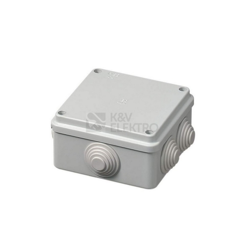 Rozbočovací krabice na omítku s průchodkami, bezhalogenová Technické parametry: Vnitřní rozměry (VxŠxH): 100 x 100 x 50mm Počet otvorů / velikost: 6x ø28 mm (PG 21) Víčko: plné, šroubovací Barva: šedá (RAL 7035) Materiál: ABS s vysokou odolností vůči UV Zkouška žhavou smyčkou: 650 °C Pevnost: IK 08 Teplotní odolnost, rozsah použití: -25 - +60˚C Stupeň krytí: IP55 Odpovídá normám: ČSN EN 60 670-1