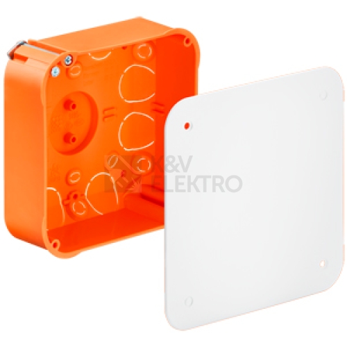 Rozvodná krabice 105x105 mm Hloubka 53 mm Pro průřez do 4 mm2 4 vylamovací otvory Ø 35 mm 8 vylamovacích otvorů Ø 20 mm Vhodná pro DIN lištu TS 35 Včetně víčka