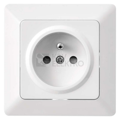 Kvalitní jednonásobná FRENCH zásuvka s integrovanou dětskou clonkou. Montáž do krabice. IP20. Šroubové svorky.
