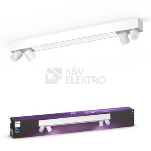 DODÁVÁNO BEZ DÁLKOVÉHO OVLADAČE! Stropní čtyřbodové svítidlo Centris se čtyřmi flexibilně nastavitelnými spoty připevněnými na kovovou základnu o rozměrech 99 x 8,5 cm v bílém provedení z kolekce chytrého osvětlení Philips Hue je vhodné pro umístění do obývacího pokoje, ložnice či kuchyně. Ve středu základny pod plastovým bílým difuzorem je integrovaný LED zdroj Hue White and Color Ambiance s příkonem 1 x 40 W, jehož intenzitu světla lze libovolně upravovat podle denní potřeby od 2000K (teplé žárovkové světlo) do 6500K (studené bílé světlo) a zároveň je možné vybírat z 16 milionů barev, ať už chcete relaxovat na konci dne, nebo potřebujete získat energii po probuzení anebo právě vaříte, či pracujete na počítači. Na krajích je svítidlo osazeno celkem čtyřmi paticemi GU10 (2+2) pro úsporné LED zdroje o maximálním příkonu 4 x 6 W. Součástí balení jsou čtyři Hue LED žárovky o příkonu 4 x 5,7 W White and Color Ambiance, které odpovídají svitu klasickým čtyřem 50 W žárovkám, mají extrémně dlouhou životnost až 15.000 h při až 50.000 spínacích cyklech. Pokud je připojíte přes můstek Philips Hue Bridge (není dodáván v balení), budete moci i toto světlo ovládat přes mobilní aplikace odkudkoli. Krytí IP20 není určeno do míst s vyšším výskytem vlhkosti vzduchu. Výhodou tohoto svítidla je možnost ovládat jej pomocí Bluetooth aplikace ve Vašem mobilním zařízení či tabletu. Integrovaný LED zdroj Hue White and Color Ambiance s příkonem 1x40W + 4 x LED žárovka Hue White and Color Ambiance GU10 5,7W součástí balení - nahrazují klasické 50W žárovky 4 světelná schémata 2000K - 6500K - teplé žárovkové světlo až studené denní světlo Svítivost: 2600lm + 4x350 lm Energetická třída: A Dlouhá životnost až 15 let při průměrném svitu 3 h/denně (15.000 hodin) Krytí IP20 - není vhodné do koupelny Rozměry: výška 12,7 cm, šířka 99 cm, délka 8,5 cm Možnost ovládat přes chytré zařízení pomocí technologie Bluetooth