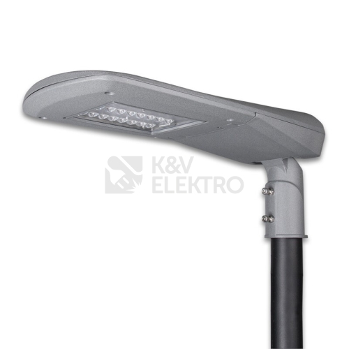 LED pouliční svítidlo 50W, šedá barva, 230V, IP65, 3000K - teplá bílá, světelný tok 5470lm, vyzařovací úhel 145x85°, Ra>70, životnost až 50.000h, A+, rozměry 591x256x131, materiál hliník+sklo, nestmívatelné, PF>0,9