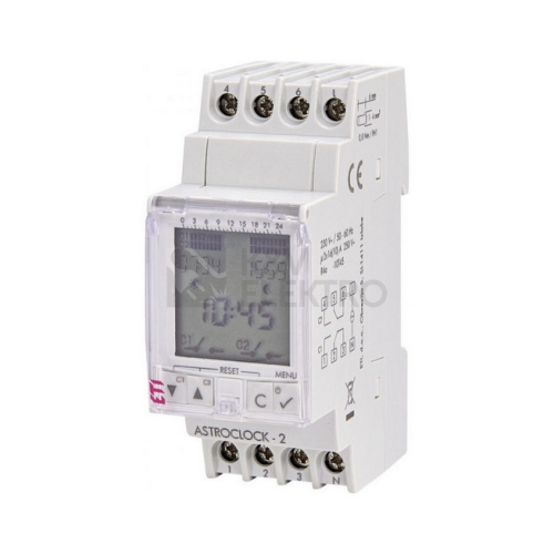 Astronomické spínací hodiny, 2moduly, 2x přepínací kontakt 16A/250V