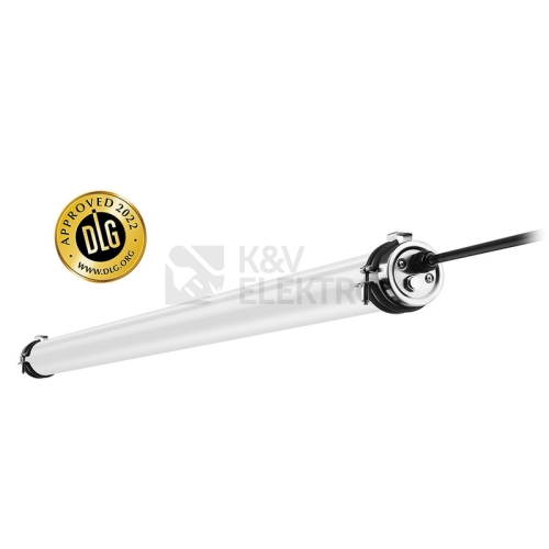 LED svítidlo se zvýšenou chemickou odolností, 40W, 230V, IP69K, 4000K-neutrální bílá, světelný tok 5200lm, vyzařovací úhel 120°, CRI>80, životnost 56.000h, rozměry 1152x75x86mm, materiál UV stabilní PMMA a nerezová ocel, nestmívatelný tzv. flicker free driver, PF>0,9. Součástí balení jsou dva držáky pro přisazenou montáž zabraňující poškrábání a přenosu vibrací. Lze zakoupit sadu k zavěšení (není součástí).