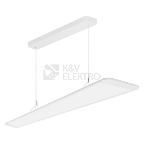 Závěsná svítidla s technologií bočního svícení pro přímé a nepřímé vyzařování, nízké oslnění, 1 200 mm. Vlastnosti produktu: Obdélníková (1 200 mm x 300 mm) samostatná svítidla s přímým (70%) a nepřímým (30%) vyzařováním. Předřadník integrovaný v externím předřadníkovém boxu. UGR 19 podle EN12464-1. Vysoká světelná účinnost: až 110 lm/W. Životnost (L70/B50): 50 000 h (při 25 °C). Dodržuje jednotný vzhled LEDVANCE provedení (provedení SCALE). Velmi tenké hliníkové tělo. DALI provedení s předřadníkem DALI-2 pro IoT. Výhody produktu: Závěsná svítidla s technologií bočního svícení pro přímé vyzařování (70%) a nepřímé vyzařování (30 %). Atraktivní a funkční design pro kancelářské aplikace. Spolehlivé snížení oslnění (UGR ≤19). Velmi homogenní světlo. Nenáročná údržba a nízké provozní náklady. Externí předřadník rozšiřuje možnosti použití. Speciálně řešený světlovod pro svítidla s nízkým vyzařováním. Snadná a rychlá instalace. Světlo s nízkou úrovní blikání díky speciálnímu předřadníku. 5letá záruka. Druh použití: Účinný ekvivalent tradičních svítidel T8 a T5. Kanceláře. Jednací místnosti. Konferenční prostory. Recepce a vstupní haly. Výbava / příslušenství: Sada pro zavěšení součástí balení.