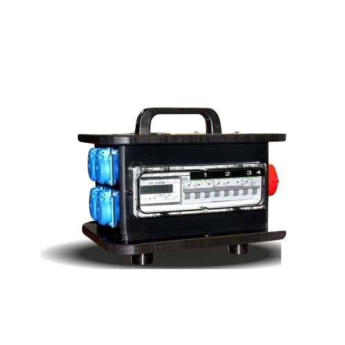 Mobilní rozvaděč řady KPB modulové okno v provedení 12 TE plastové madlo elektroměr DTS 353 Vstup: přívodka CEE 32A 400V 5P Výstup: 4x 230V / 16A CZ + 2x jistič 16A B 1P 2x CEE 32A 400V 5P + 2x jistič 32A B 3P 1x elektroměr DTS 353 4M Součástí rozvaděče je ocelový stojánek.