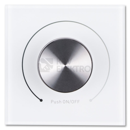RF dálkový otočný ovladač pro řízení jasu (stmívání) jednobarevných LED pásků umožňuje řízení jedné skupiny RF přijímačů (nejsou součástí), tato skupina může mít neomezeně přijímačů. Instalace do elektroinstalační krabice pomocí vrutů (součástí). Rozsah stmívání 1 - 100%. Rozměry ovladače: 80×80×53mm, napájení 100-240VAC, dosah cca 20m.