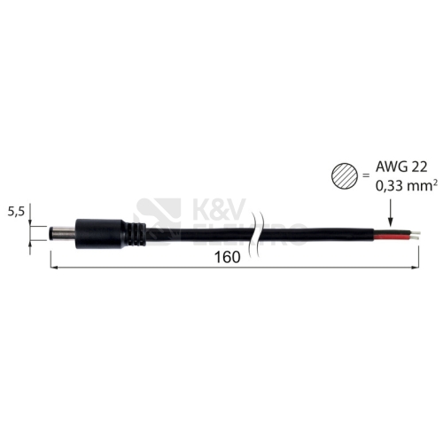 Napájecí konektor můžete použít s plastovými napájecími zdroji s konektorem na výstupu. Délka cca 34 cm. Průřez vodičů: AWG22/0,33mm2. Max. proud: 2A.