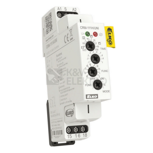 Multifunkční časové relé pro univerzální využití v automatizaci, řízenía regulaci nebo v domovních instalacích všechny funkce iniciované napájecím napětím, mimo funkci blikače,mohou využít ovládací vstup k potlačení zpoždění (pauza) volba režimu relé – podle nastavené funkce, trvale sepnuto, trvalerozepnuto, funkce impulzního relé se zpožděním (CRM-111H) / spínánídruhého relé dle napájecího napětí (CRM-113H) univerzální napájecí napětí AC/DC 12 – 240 V nastavitelný čas od 50 ms do 30 dní je rozdělen do 10-ti rozsahů:(50 ms - 0.5 s / 0.1 s - 1 s / 1 s - 10 s / 0.1 min - 1 min / 1 min - 10 min /0.1 hod - 1 hod / 1 hod - 10 hod / 0.1 den - 1 den / 1 den - 10 dní /3 dny - 30 dní) výstupní kontakt:CRM-111H: 1x přepínací 16 ACRM-113H: 1x přepínací 16 A, 2x přepínací 8 A multifunkční červená LED bliká nebo svítí v závislosti na provozním stavu
