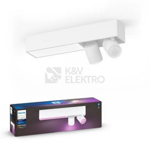 DODÁVÁNO BEZ DÁLKOVÉHO OVLADAČE! Stropní dvoubodové svítidlo Centris se dvěmi flexibilně nastavitelnými spoty připevněnými na kovovou základnu o rozměrech 40,8 x 8,5 cm v bílém provedení z kolekce chytrého osvětlení Philips Hue je vhodné pro umístění do obývacího pokoje, ložnice či kuchyně. Uvnitř základny pod plastovým bílým difuzorem je integrovaný LED zdroj Hue White and Color Ambiance s příkonem 1 x 11 W, jehož intenzitu světla lze libovolně upravovat podle denní potřeby od 2000K (teplé žárovkové světlo) do 6500K (studené bílé světlo) a zároveň je možné vybírat z 16 milionů barev, ať už chcete relaxovat na konci dne, nebo potřebujete získat energii po probuzení anebo právě vaříte, či pracujete na počítači. Na jednom konci je svítidlo osazeno dvěmi paticemi GU10 pro úsporné LED zdroje o maximálním příkonu 2 x 6 W. Součástí balení jsou dvě Hue LED žárovky o příkonu 2 x 5,7 W White and Color Ambiance, které odpovídají svitu klasickým dvoum 50 W žárovkám, mají extrémně dlouhou životnost až 15.000 h při až 50.000 spínacích cyklech. Pokud je připojíte přes můstek Philips Hue Bridge (není dodáván v balení), budete moci i toto světlo ovládat přes mobilní aplikace odkudkoli. Krytí IP20 není určeno do míst s vyšším výskytem vlhkosti vzduchu. Výhodou tohoto svítidla je možnost ovládat jej pomocí Bluetooth aplikace ve Vašem mobilním zařízení či tabletu. Integrovaný LED zdroj Hue White and Color Ambiance s příkonem 1x11W + 2 x LED žárovka Hue White and Color Ambiance GU10 5,7W součástí balení - nahrazují klasické 50W žárovky 4 světelná schémata 2000K - 6500K - teplé žárovkové světlo až studené denní světlo Svítivost: 900 lm + 2x350 lm Energetická třída: A Dlouhá životnost až 15 let při průměrném svitu 3 h/denně (15.000 hodin) Krytí IP20 - není vhodné do koupelny Rozměry: výška 12,7 cm, šířka 40,8 cm, délka 8,5 cm Možnost ovládat přes chytré zařízení pomocí technologie Bluetooth