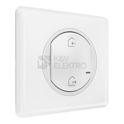 Cíliane with Netatmo bezdrátový ovládač scénářů "doma/mimo domov" (baterie CR2032 a oboustranná lepenka součást balení), zadní strana je zcela plochá (lze montovat na zeď, sklo, nábytek pomocí šroubů nebo oboustranné lepenky), scénáře se nastavují pomocí aplikace Home + Control - barva Bílá, dodáván s rámečkem v barvě Bílá