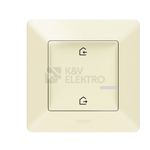 Valena Life with Netatmo bezdrátový ovládač scénářů "doma/mimo domov" (baterie CR2032 a oboustranná lepenka součást balení), zadní strana je zcela plochá (lze montovat na zeď, sklo, nábytek pomocí šroubů nebo oboustranné lepenky), scénáře se nastavují pomocí aplikace Home + Control - barva Béžová, dodáván s rámečkem v barvě Béžová