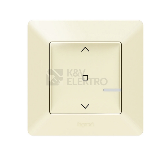 Valena Life with Netatmo bezdrátový žaluziový spínač pro ovládání až 20 drátových žaluziových spínačů (baterie CR2032 a oboustranná lepenka součást balení). Zadní strana je zcela plochá (lze montovat na zeď, sklo, nábytek pomocí šroubů nebo oboustranné lepenky) - barva Béžová, dodáván s rámečkem v barvě Béžová