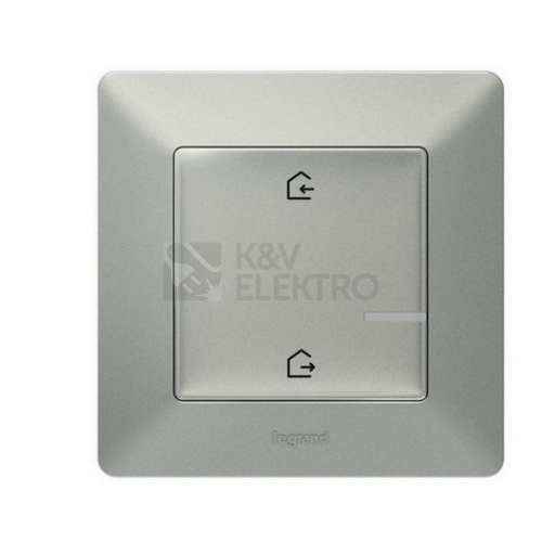 Valena Life with Netatmo bezdrátový ovládač scénářů "doma/mimo domov" (baterie CR2032 a oboustranná lepenka součást balení), zadní strana je zcela plochá (lze montovat na zeď, sklo, nábytek pomocí šroubů nebo oboustranné lepenky), scénáře se nastavují pomocí aplikace Home + Control - barva Hliník, dodáván s rámečkem v barvě Hliník
