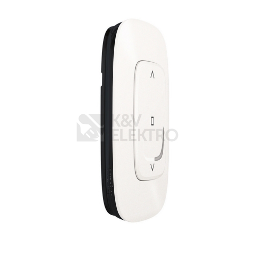 Valena Allure with Netatmo bezdrátový žaluziový spínač (baterie CR2032 a oboustranná lepenka součást balení) pro ovládání až 20 drátových žaluziových spínačů. Zadní strana je zcela plochá (lze montovat na zeď, sklo, nábytek pomocí šroubů nebo oboustranné lepenky) - barva Perleť, dodáván s rámečkem v barvě Perleť