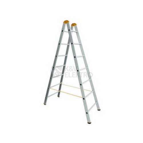 Počet nášlapů: 2x7 délka: 2,0 m materiál: Al Oboustranné hliníkové štafle 2,0 m poskytují svým uživatelům větší pocit stability, pohodlí a variability a jsou využívány převážně ve skladech díky nízké váze a skladnosti.