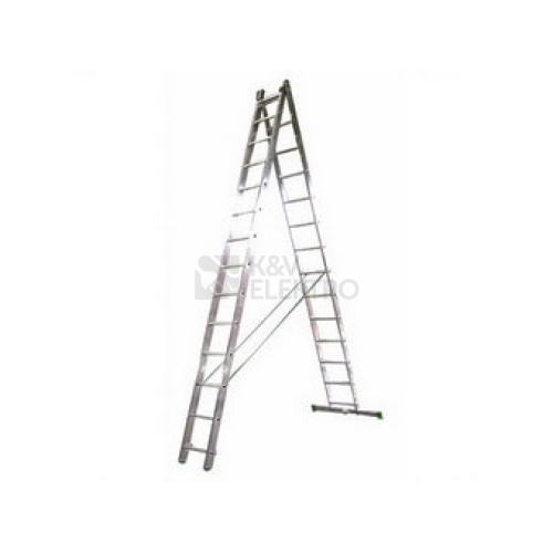 Délka: 3,14 m 7 příček materiál: Al Dvoudílný opěrný žebřík 3,14 m je potřebný doplněk pro práci ve výškách doma i na zahradě, bez něhož se neobejde žádný kutil.
