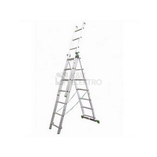 Délka: 6,25 m 10 příček materiál: Al Trojdílný opěrný žebřík 6,25 m je potřebný doplněk pro práci ve výškách doma i na zahradě, bez něhož se neobejde žádný kutil.