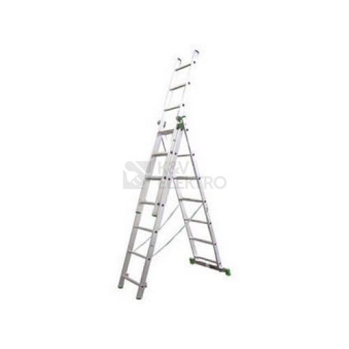 Délka: 5,13 m 8 příček materiál: Al Trojdílný opěrný žebřík 5,13 m je potřebný doplněk pro práci ve výškách doma i na zahradě, bez něhož se neobejde žádný kutil.
