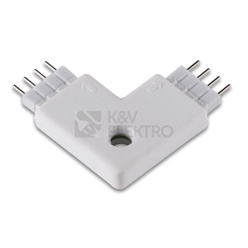 Propojovací konektor tvar L pro RGB LED pásky šíře 10mm. Konektor obsahuje dva výjimatelné propojovací díly, každý z nich je třeba připájet k RGB LED pásku. Následně lze tyto části vsunout do konektoru, tím dojde k propojení.