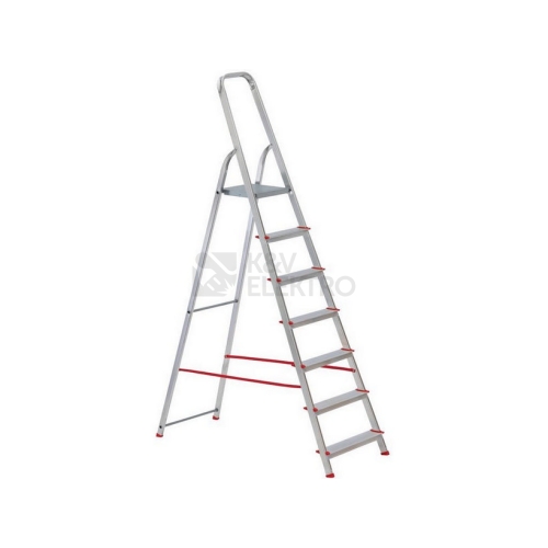 Schůdky Al 7 (1450 mm), nosnost 120 kg, červené.- 1 x 7 příček včetně plošinky- max. výška plošinky 145 cm- max. nosnost 120 kgJednostranné schůdky ALVE Eurostyl se stanou nepostradatelným pomocníkem ať už v domácnosti, tak i menších firmách. Využijete je při mnoha pracích jako např. úklidu, montážích či výměnách žárovek a mnoho dalších. Jejich hliníková konstrukce s velmi nízkou hmotností je předpokladem pro snadné přenášení. Nášlapné plochy včetně plošinky jsou opatřeny protiskluzovým rýhováním, které zvyšuje vaši bezpečnost při práci. Protiskluzové jsou i plastové nohy. Maximální nosnost činí 120 kg.