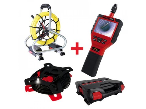 Sada RUNPOCAM RC2 + Profi-set (sestává z multifunkční kamery RUNPOCAM RC2 (10141) a profi sady 50 m (10057))., multifunkční kamera s posuvem pomocí pera ze skelného vlákna - průměr 4,5 mm. Rozměry: L 442 x B 404 x H 142 mm.