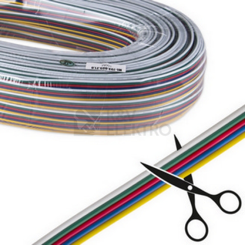 5-žilový kabel s vodiči AWG 20, barva červená/zelená/modrá/bílá/žlutá. Kabel obsahuje pět měděných vodičů o průřezu 0,5 mm2. Používá se k připojování a propojování RGB+W a RGB+WW LED pásků. Při zapojení volte maximální délku a vhodný průřez vodiče vždy s ohledem na přípustný úbytek napětí, který na vodiči vzniká průchodem proudu. Základní balení 100m, prodej na míru.